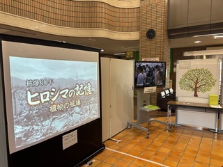 [画像]平和ポスター展(31.7KB)また、広島平和記念資料館から平和学習用資料を借用して、ポスターの展示や映像資料の公開をするなどして、広島に原子爆弾が落とされたことでどのような影響があったのかが理解できる内容としました。
