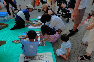 当日は、暑さを避けるために、17時から19時での開催としましたが、終了時でも明るさが残っており、パズルを楽しみました。同じ広場でマーケットイベントが開催されていたこともあり、小さなお子様連れのご家族など、多くの方々が参加しました。