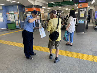 令和7年8月15日(金曜日)、南流山駅で年金支給日に合わせた「電話de詐欺(特殊詐欺・振り込め詐欺)」防止街頭啓発活動が行われました。
