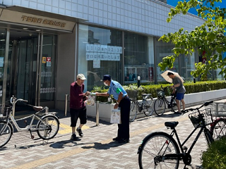 当日は、流山警察署生活安全課を中心に、流山市民安全パトロール隊、市役所コミュニティ課が参加のもと、電話de詐欺対策のチラシなどを配布し詐欺に遭わないよう注意を呼びかけました。