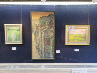 今回の展示には、流山市や野田市の風景を描いた作品を含む、「須崎」、「秋光」、「門」、「富士」、「笹川流れ」、「利根運河の四季 春」、「蘇州水路」、「利根運河の四季 夏」、「松蔭」、「初夏」、「夜桜」、「鵜来島」の12作品が展示されています。