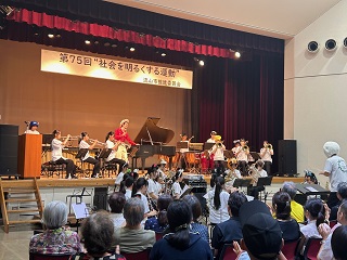 社会を明るくする運動とは、犯罪や非行の防止と罪を犯した人たちの更生について、理解を深め安全・安心な社会地域を築こうとする全国的な運動です。コンサートでは、この運動の主旨や現役の保護司による活動の内容の説明を行いました。