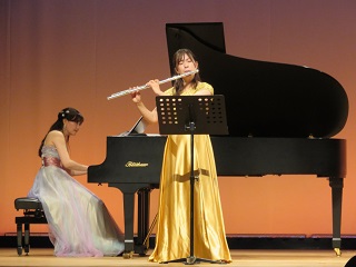 [画像]第439回サロンコンサートの様子(42.8KB) 「ジョン・ウィリアムズメドレー」では、「ハリー・ポッターと賢者の石」より「ヘドウィグのテーマ」、「ジュラシック・パーク」より「ジュラシック・パークのテーマ」、インディ・ジョーンズ「レイダース 失われたアーク(聖櫃)」より「レイダース・マーチ」の3曲が披露されました。ピアノとフルートが奏でる人気映画のテーマ曲に、来場者は聴き入っていました。