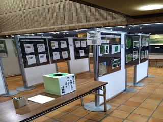 「緑のカーテン写真コンテスト」では、個人部門、事業所部門、小中学校部門の3部門の合計で21作品の応募があり、真夏の暑い日差しを避ける見事な緑のカーテンの写真が飾られました。