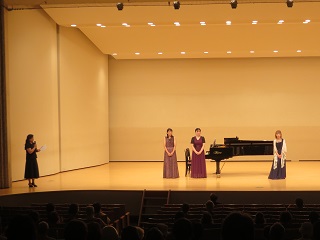 [画像]サロンコンサートの様子(40.3 KB)最後に、東日本大震災の復興支援ソングとして知られる「花は咲く」が披露されました。復興を願って多くの方に歌われた同曲を、ピアノの優しい音色の伴奏に合わせて、ソプラノが心を込めて繊細に歌い上げました。未来への希望や平和を願う今回のコンサートの締めくくりにふさわしい演奏に、観客からは大きな拍手が寄せられました。