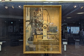 市展賞を受賞した有賀敏明さんは、「出品した作品は、以前仕事をしていた実験室の様子を思い出しながら描きました。こういう仕事もあるということを、見ていただいた皆さんには知ってもらいたいです。また、ガラスの中の液体や透き通って見える向こう側の景色にはこだわって描写しました」と話しました。実際に仕事をされていた有賀さんの目を通した景色描写が、実験室や器具に対する思いを感じさせる作品となっています。