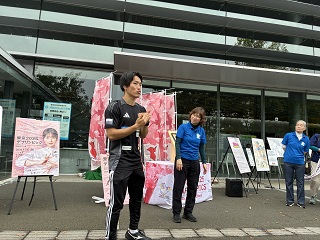 イベントでは、野田市出身のデフリンピックサッカー日本代表・瀧澤諒斗さんが登壇しました。瀧澤さんは自身の経験や競技への思い、大会への意気込み、プレー中に耳が聞こえないことで感じるデフスポーツならではのコミュニケーションでの苦労や得意なプレーなどが語られ、会場は大いに盛り上がりました。