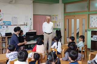 [画像]鈴木謙次さんとの交流の様子(61.3 KB)この日の午前中、鈴木さんに中野久木保育所にお越しいただき、ほうれん草の育て方やおいしい食べ方を教えてもらい、交流を深めました。子どもたちの「野菜が少し苦手です。ほうれん草をたくさん食べられる食べ方を知りたいです」という質問に、鈴木さんは「お浸しやごま和え、お味噌汁に入れてもおいしいよ」と教えてくれました。
