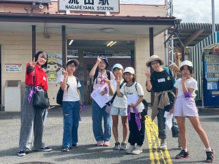 [画像]わくわく楽校〜流山ヒストリーハンターズ〜の様子(47.2 KB)初めに、2班に分かれて昔の流山の写真を手がかりに、現在と同じ場所を探すウォークラリーと、流山にゆかりのある場所を巡る町探検を行いました。流鉄に乗って流山駅へ移動し、赤城神社や三本松古墳跡など、歴史的な建物や場所を巡りながら、各所に設けられたミッションに挑戦しました。子どもたちは「ここが昔の〇〇だったの!?」と驚きながら、普段生活している流山市の歴史に触れることができました。