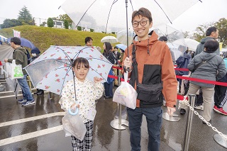 毎年来ているという市野谷在住のツノダさんご家族は、「お目当ては能登牛です。雨ですが賑わっていますね。」とお話されていました。