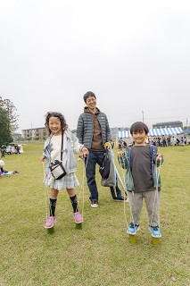 市民活動フェスタを楽しんだ谷貝さんご家族は、「防災・備えブースで食べたα米が、美味しかったです。里山ボランティアのブースで竹ぽっくりを作って楽しんでいます。」と話してくれました。