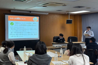 [画像]ふりかえり会写真(30.2 KB)クリーンセンターの職員から、Cグループの「食品ロスを減らすには?」という提案に対し、発表しました。ポスターを作成して周知してはどうかという提案に対しては、食品ロスをテーマにしたポスターコンクールを開催し、市内の事業所に配布したいという回答がありました。