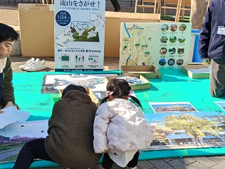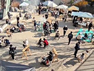 令和8年1月24日(土曜日)、流山おおたかの森駅北口都市広場で第4回流山市景観ワークショップが開催されました。時折冷たい風が吹きましたが、天候に恵まれたこと、同じ広場でマーケットイベントが開催されていたこともあり、多くの方々がパズルを楽しみました。