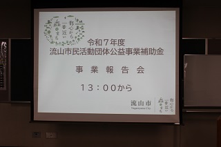[画像]令和7年度流山市民活動団体公益事業補助金事業報告会(31.1 KB) 成果発表では、1年間にわたる活動の実績について、スライドを使用したプレゼンテーション形式で報告が行われました。