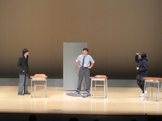 [画像]20分シアター(40.6 KB)生徒たちは他校の演劇を間近で観劇することで、それぞれの「新境地」への解釈の違いに刺激を受けた様子でした。同じテーマでもコメディからシリアスまで、多彩な内容で各校の個性が光るものになりました。新たな表現方法や発想に触れて今後の活動への意欲を高める機会として、実りのあるイベントとなりました。