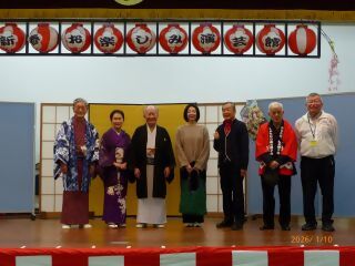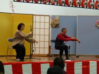 令和8年1月10日(土曜日)、初石公民館で、吉例「新春お楽しみ演芸館」が開催されました。当日は天候にも恵まれて、32名が来館しました。おおたかの森お囃子会の皆さんが奏でる迎え囃子の流れるなか正月らしく開演し、和妻、ミュージカルソー、落語二題で笑いあふれる新春の始まりとなりました。