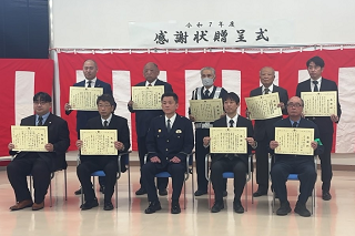 令和8年1月23日(金曜日)、流山市民安全パトロール隊としてご尽力いただいている隊員の皆さんに感謝の意を表するため、流山警察署で感謝状贈呈式が行われました。