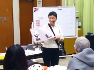 その後講師が英語の絵本でおはなし会の実演を行いました。具体的に絵本を示しながら、「楽しみながら、自分の個性を届けるつもりで読むのが大切です」といったお話がありました。また、ウクレレに合わせた手遊びもあり、「子どもと楽しむ」ことを感じられる講座になりました。参加者は積極的に質問し、講師はその都度丁寧に回答していました。
