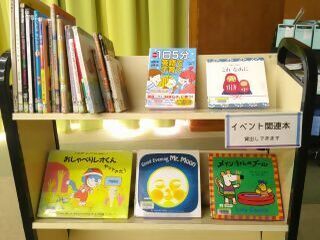 閉会後、会場に展示されている図書館の英語絵本を借りる方や、2週間後に行われる「よみきかせ えいご絵本ライブ」に申し込む方がいらっしゃいました。