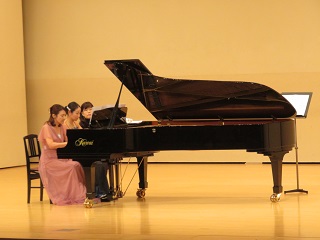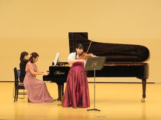 [画像]第444回サロンコンサートの様子(40.1 KB)最後に演奏されたのは、「くるみ割り人形」より「花のワルツ」です。「くるみ割り人形」は、「白鳥の湖」「眠れる美女」とともに「世界三大バレエ」と呼ばれるチャイコフスキーが音楽を手掛けたクラシックバレエの最高傑作として、世界中で愛され続けています。優雅で美しい旋律を、ピアノ連弾とバイオリンの重厚感ある音色で演奏しました。曲の終盤、激しさを増していく旋律を最後まで奏で終えた演奏者に、この日一番の拍手が送られました。