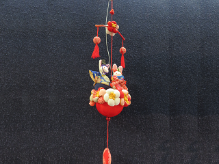 今回は、「ひな飾り」と題し、あざやかで色とりどりのつるし飾りや、荘厳な着物を召したひな人形、午年の干支飾り、立体感あふれるタペストリーなど、たくさんの作品が展示されています。