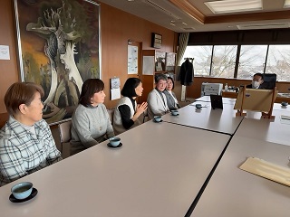 [画像]市長と懇談の様子2枚目(32.1 KB) 井崎市長は「設立当初に読み聞かせを聞いたお子さんが、今では親となって自分の子どもを連れてくる。それほど長い時間、活動を紡いでこられたのですね。私の子どもも思井児童センターに通っていたので、皆さんの読み聞かせを聞いていたのかもしれません。」と感慨深げに語りました。