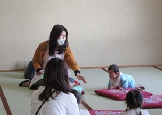令和8年3月1日(日曜日)、初石公民館和室で中央公民館主催事業「双子の子育てひろば さくらんぼくらぶ」が開催されました。今回は助産師の小林由美子さんが講師となり、双子の育児をしている親子の3組11人が参加しました。