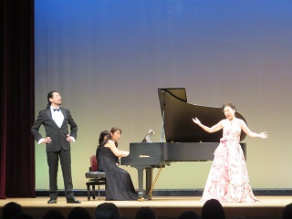 [画像]第446回サロンコンサートの様子(35.8 KB)今回は、「椿姫」より「思いつめていました」、「ドン・パスクワーレ」より「天使のように美しい娘」、「マノン」より「私まだぼんやりしているの」、「ラ・ボエーム」より「私の名はミミ」、「リタ」より「私は陽気だ」、「メリー・ウィドウ」より「メリー・ウィドウのワルツ」の6曲が披露されました。