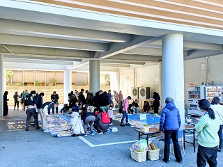[画像]雑誌リサイクルの様子(45.0 KB) 再開日当日は多くのイベントを開催しました。保存期間の過ぎた雑誌を市民に無料配布する雑誌リサイクルには223名、声で届けるおはなし会には31名ご参加いただきました。