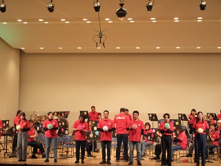 [画像]手遊びの様子(47.6 KB)手遊びうたの他にも思わず口ずさんでしまう有名な曲のメドレーが演奏され、知っている曲の名前を確認しあったり、体を小さく揺らしてリズムをとったり、家族で思い思いに音楽を楽しんでいました。ジャズアレンジされた「人生のメリーゴーランド」や圧巻の合唱だった「いのちの歌」など、あっぷる隊゜の良さがたっぷり詰まった演奏に、子どもたちも聞き入っていました。