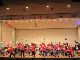 [画像]フィナーレで風船が落ちてくる様子(51.3 KB)最後は体操曲「からだダンダン」で子どもたちは体を動かしました。音楽に合わせて足踏みし、会場内は一体感で包まれました。アンコールもあり、ステージからカラフルな風船が落ちてきました。観客からは「迫力満点でとても楽しかったです」「初めてのコンサートデビューでした。1才7カ月の息子が夢中でした。音楽を楽しむ子になってほしいです。私も癒されました。」との感想がありました。次回、第42回子育てコンサートは令和8年9月開催予定です。詳細は、広報ながれやまやホームページでお知らせします。