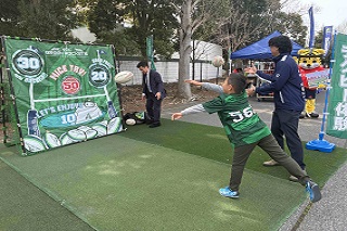 [画像]ラグビー体験(43.5 KB)会場外では、流山市のPRブースが設けられ、新鮮食味による、野菜などの販売が行われました。 また、恒例のグッズ販売やキッチンカーに加え、ラグビー体験会ブースも設置され、子どもたちがラグビーボールを投げたり、力いっぱいタックルに挑戦したりと、プロの迫力を肌で感じるアクティビティを楽しんでいました。親子連れを中心に多くの笑顔があふれ、試合前からスタジアムは活気に包まれていました。