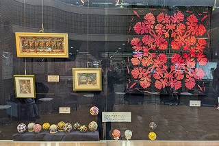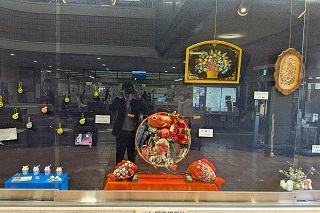 令和8年4月30日(木曜日)まで、市役所1階の市民ギャラリーで「流山市文化協会手工芸部作品展」が開催されています。今回は、バイエルンマーレライ、シャドウボックス、つる工芸、ハワイアンキルトなど約40点の作品が展示されています。