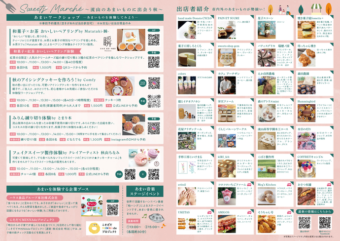 あまいスイーツ、パン、野菜、飲み物、香り、小物、体験など様々な分野のあまいものを楽しんでいただけます。