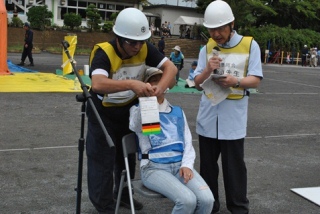 今年の訓練では、今まで別々に行っていた救出訓練と救護訓練を初めて実際に近い形で連携して行いました。消防署と消防団、自衛隊が倒壊家屋からケガ人を救出し、医師会、歯科医師会がトリアージを行い、救護所で応急処置をするというものです。トリアージとは、多数の傷病者を重症度と緊急性によって分別し、治療の優先度を決定することで、医師の人数や医療資材などさまざまな制約がある大規模災害時に、最善の救命効果を得るために行われる処置です。