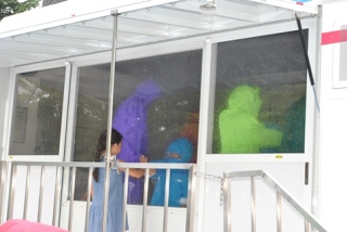 今回、初めて設置された降雨体験車には多くの方が並びました。国土交通省が所有の車両で、防災訓練の会場や防災関連のイベントなどに出動し人気だそうです。この日も1時間で約80人の家族連れなどが、用意された雨カッパを着て体験車に乗車。車内では、徐々に雨足が強まり、自然ではほとんどない最大で時間300mの豪雨が参加者を襲いました。車から降りてくる皆さんは、「雨が重く感じました」「台風で、風が吹いていたらもっと大変ですよね」「ただ、じっと立っているしかできませんでした」と笑顔はありませんでした。