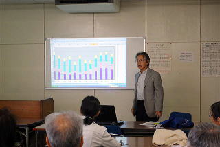 地球温暖化防止のため、家庭からでるCO2をどう減らせばよいのか?本年度第3回目となる市民環境講座が10月25日、北部公民館で開かれました。流山市が市民団体である「温暖化防止ながれやま」に業務委託して開催したものです。