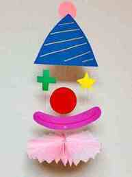 南流山にピエロがやってきた。色紙のパーツを組み合わせて、自分だけのピエロのモビールを作りましょう。
