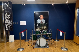[画像]猪俣猛追悼ジャズライブ(31.7 KB)また、第10回の流山ジャズフェスティバルは、新型コロナウイルス感染症の影響で開催できないままになってしまいましたが、9年間の流山ジャズフェスティバルの想い出を共有したいと、令和7年8月29日(金曜日)〜9月7日(日曜日)の10日間、生涯学習センター(流山エルズ) 小ギャラリーでは『猪俣猛追悼特別展』を開催。9年間の懐かしい写真や晩年愛用していたドラムセット、流山ジャズフェスティバルのパンフレットやサイン入りのポスターなどが展示され、故人のご遺族をはじめ多くのジャズファンが訪れました。