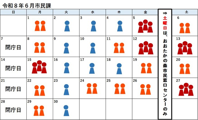 (平日の午後5時以降および土曜日は、戸籍の届出は他市区町村への照会ができないためお預かりとなります。平日、午後4時30分以降で他市区町村への照会ができない場合もお預かりとなります。また、海外からの転入、特例転入および個人番号カードの継続利用の手続きはできません。その他の取り扱いのできない業務もございますので、事前にお問い合わせ下さい。)