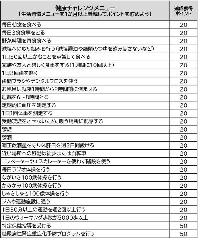 [画像]健康チャレンジメニュー(180.6 KB)【パソコン、タブレット、スマートフォンでポイントを貯めた方】