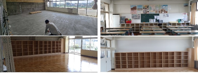 中学校の教室のロッカーや床を改修して、使いやすさの向上と転倒を防止する工事を実施しています。