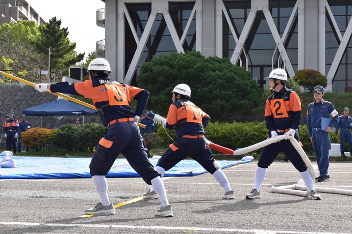令和4年6月26日(日曜日)柏市大堀川防災レクリエーション公園で第41回東葛飾支部消防操法大会が開催され、流山市のほか、市川市、船橋市、松戸市、野田市、柏市、我孫子市、鎌ヶ谷市、浦安市の消防団が参加しました。